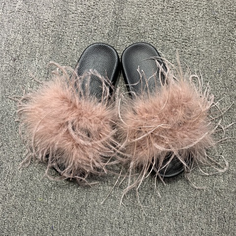 ドロップシッピング夏のダチョウの羽のスライド女性の本物の毛皮のサンダル白いトルコの羽のスリッパ