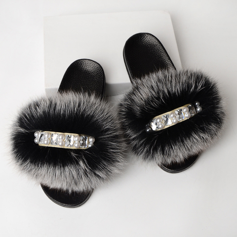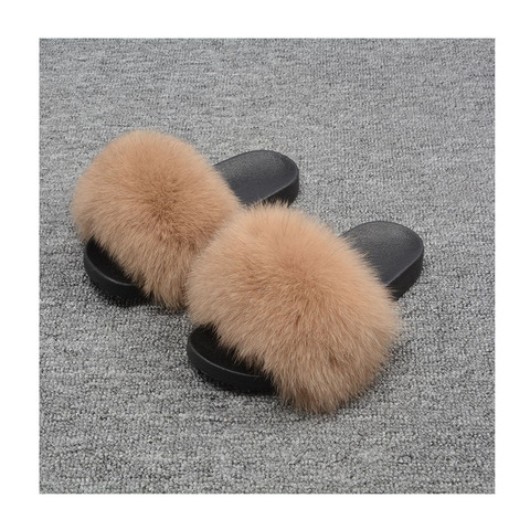 ドロップシッピング本物のフォックスファースライダーブリンブリンファースリッパふわふわ女性ファースライドスリッパ